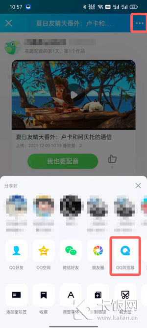4、在配音视频预览页面,点击右上角的【…】按钮,选择【QQ浏览器】;