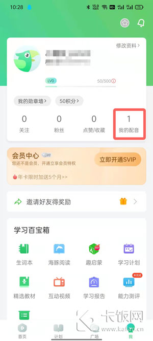 1、首先在英语趣配音app中,将自己配好的视频作品发布到自己的账号下;