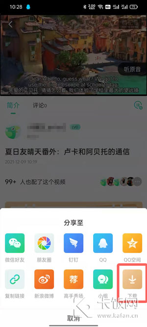 5、选择最右侧的【下载】按钮同样可以下载配音作品到手机上。