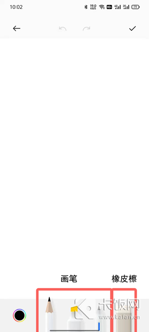 3、然后在涂鸦页面,点击下方的【画笔】,选择任意画笔使用,最右侧的是橡皮檫;