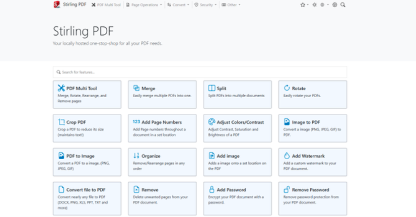 Stirling PDF 的特性和功能是经过精心设计的,以确保用户能够高效、安全地处理 PDF 文件。以下是对其主要特性和PDF功能的详细描述:
